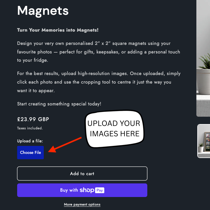 Transform your favourite photos into stylish and functional 2” x 2” square magnets — perfect for gifts, keepsakes, or decorating your fridge with a personal touch. Each magnet is custom-made with your uploaded image and carefully finished for a high-quality look and feel.